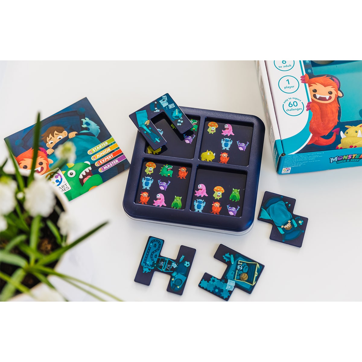 Afin de les découvrir, vous devrez placer aux bons endroits dans votre chambre les quatre pièces «meubles et objets» qui recouvriront ceux qui n’ont pas été invités par le défi choisi. «Monstres sous le lit» est un jeu proposant soixante défis du plus simple au plus difficile dans un format idéal pour les voyages.