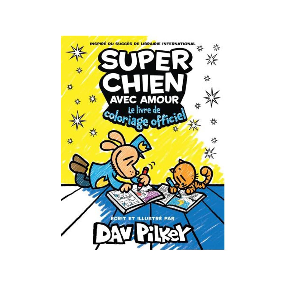 Passez des heures à colorier vos personnages préférés dans le cahier de coloriage officiel de Super Chien! Dav Pilkey, le créateur des séries Super Chien et Mini Chat et son club BD, est à l’origine de ce personnage mi-chien mi-policier qui connaît un succès international!