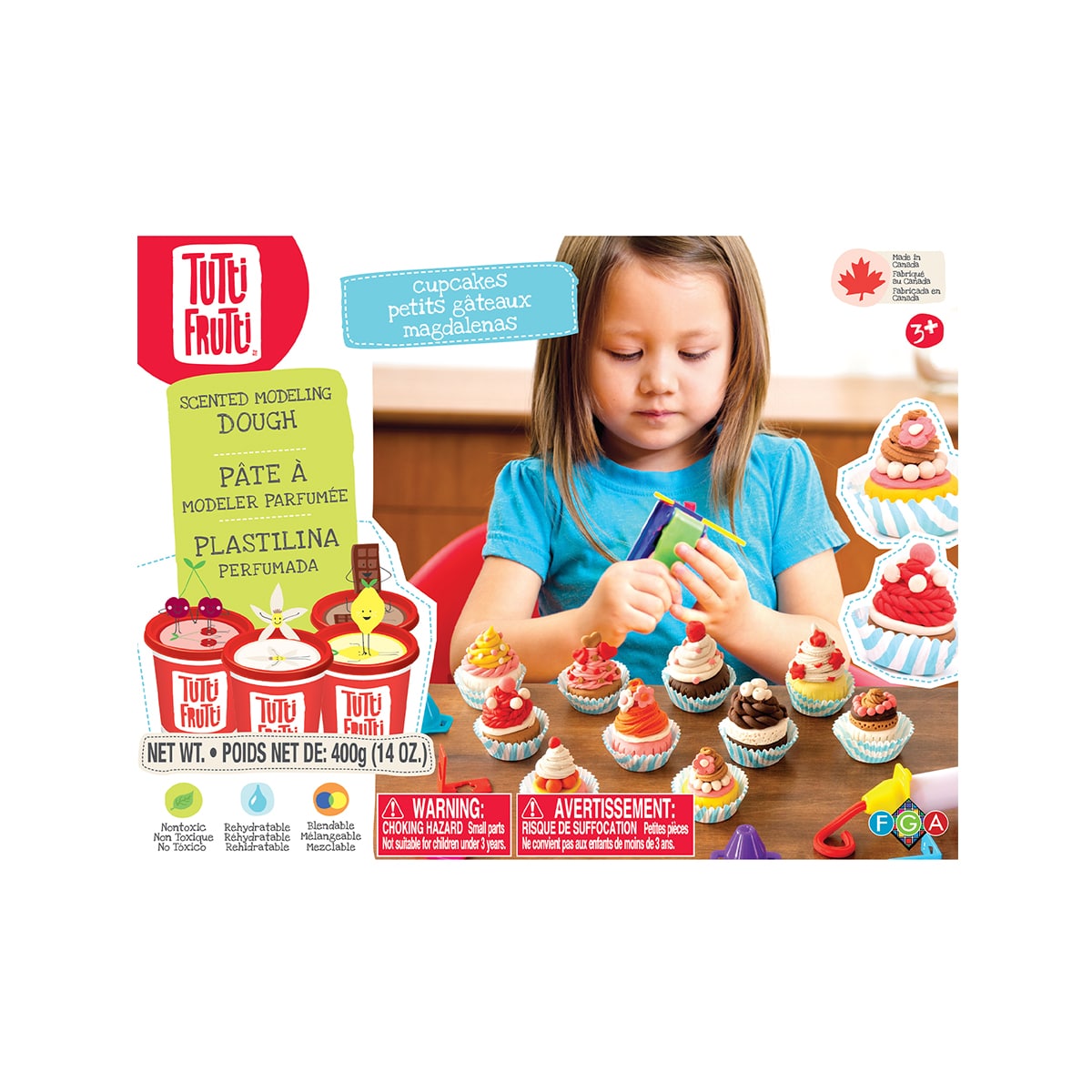 Cet ensemble créatif est parfait pour les petites mains qui aiment décorer des cupcakes. Comprend tout le nécessaire pour une activité de décoration de cupcakes – pâte à modeler parfumée, moules à cupcakes en papier, et embouts de glaçage. Mélangez les couleurs et les arômes pour des possibilités infinies. Appétissant!